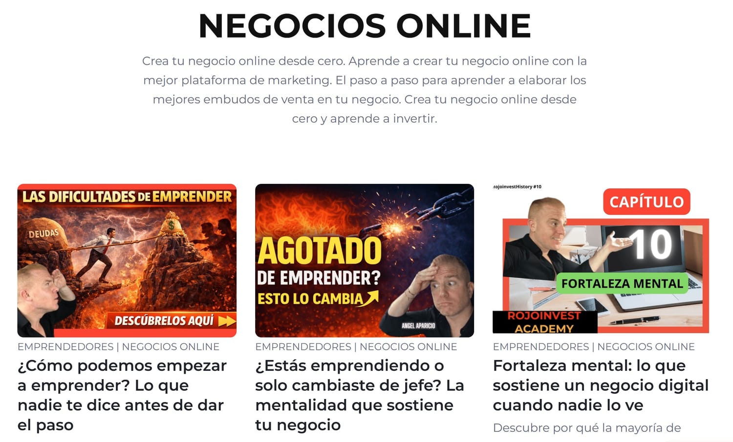Muy buenas soy Ángel Aparicio, creador de la Rojoinvest Academy. Tras casi 3 años vendiendo "casa por casa" a puerta fría, decidí en 2005 enfocarme en el sector inmobiliario y crear mi propia agencia inmobiliaria. En 2015 me adentro en el mundo de la bolsa con el objetivo de invertir conscientemente. Amante del deporte y cómo futbolista de los 7 a los 21 años, aprendí el valor del trabajo en equipo y el espíritu de competición que hoy aplico a los negocios y a mi vida. Mi experiencia acumulada, me lleva a crear esta comunidad con el fin de ayudar a cuantas más personas mejor a crear su negocio Online primero para posteriormente invertir sus ganancias en Bolsa, inmuebles & Negocios. Estoico y soñador, enfoco mis esfuerzos como coach online para ayudarte a tí.